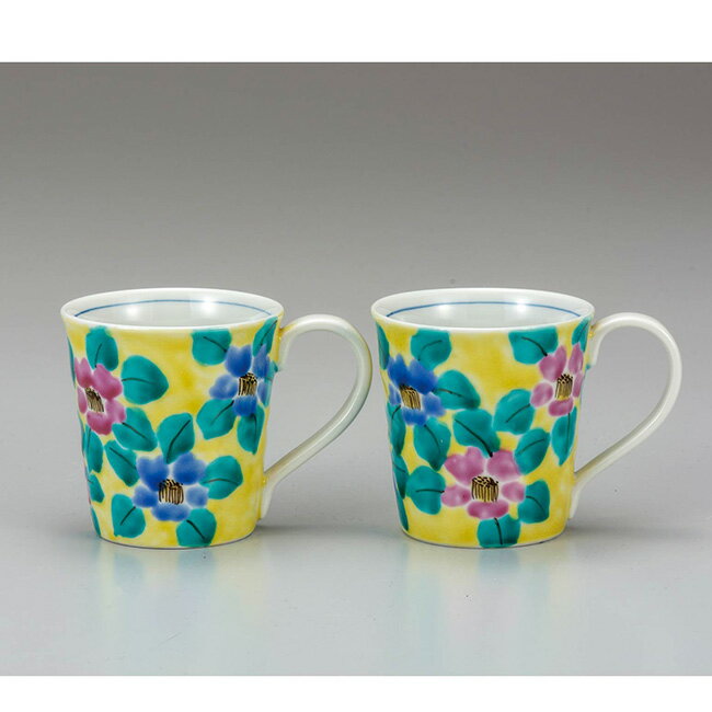 九谷焼 ペアマグカップ 色絵花文 2個セット 食器セット ペア 日本製 ギフト うつわ 陶磁器